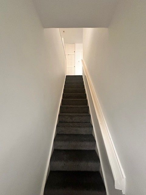 Hallway on first floor level after access, brand new carpets throughout with a good range of storage cupboards and a door accessing the staircase to the rear of the property leading to the garage.