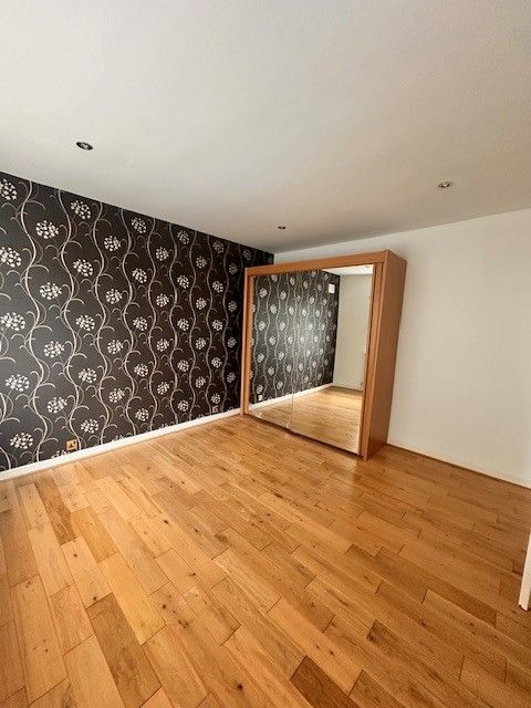 Large, bright double Bedroom with beautiful natural wood flooring. The bedroom is decorated neutrally with a feature wall and fitted wall unit giving ideal storage. Double radiator and ceiling spot lights.