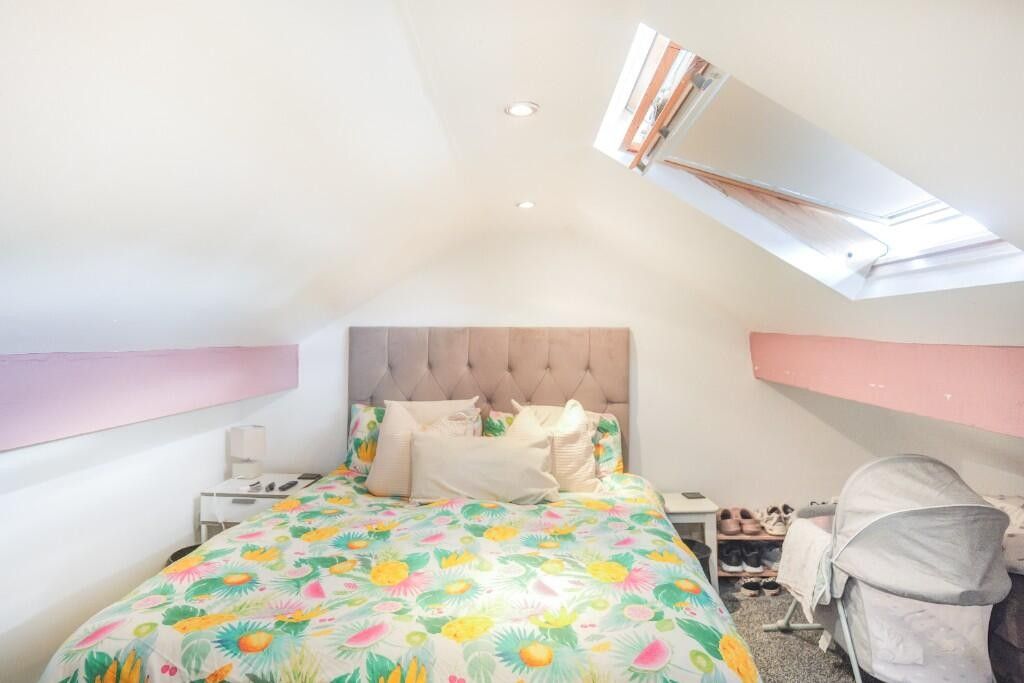 Located on the second floor, this large second bedroom is perfectly sized for a double bed and furniture. Tastefully decorated throughout. A skylight Velux window keeps the room light and airy.