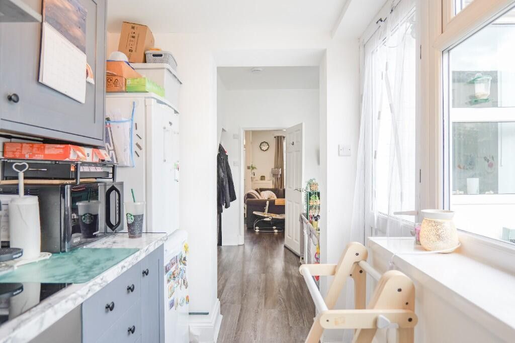 This room benefits from plenty of natural light from the rear window overlooking the courtyard garden. It has been completed to a high standard neutral decor and laminate flooring. Stairs leading to first floor.
