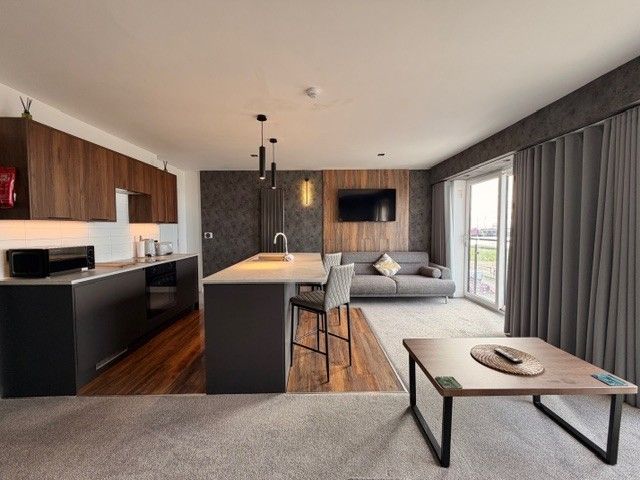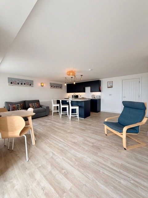 Open plan Kitchen/Diner/Living Area leading to Patio with Balcony.