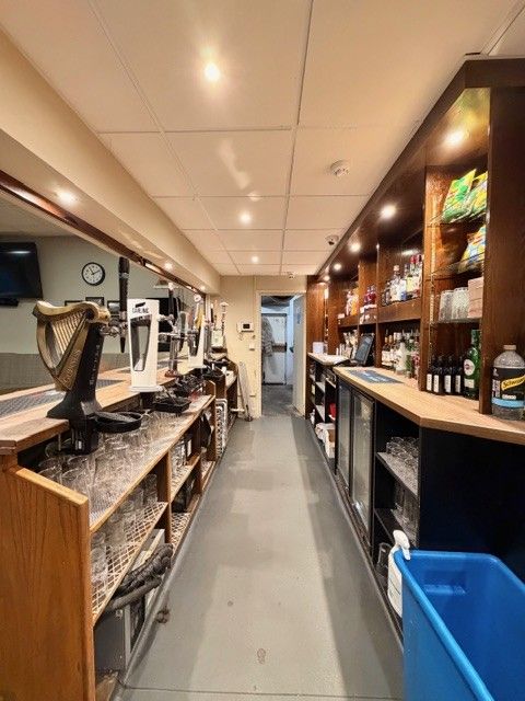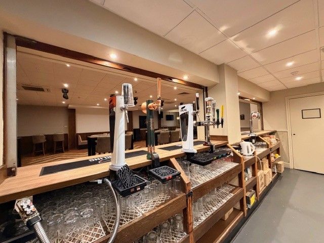 Dual access bar with 13 pumps and 6 separate optics that simultaneously serves both the games room and the function room/ bar lounge, with security shutters.
